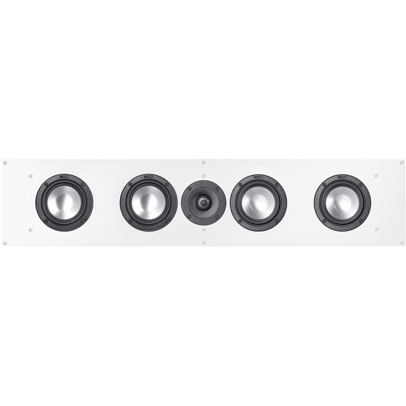 Der Atelier 950 Centerlautsprecher ist die ideale Ergänzung unserer Atelier 900 und prädestiniert für die querliegende Montage an einer Wand. Weniger als zehn Zentimeter flach ist der Center und doch ausgestattet wie eine große Standbox: auf ihrer seidenmatt weiß oder schwarz lackierten Schallwand bietet er fünf leistungsfähigen Lautsprecherchassis Platz. Der Center ist damit die ideale Besetzung für Filmfans, die sich eine unauffällige Integration ihrer Lautsprecher im Wohnraum wünschen – ohne auf hervorragenden Klang verzichten zu müssen. Der InWall-/ OnWall-Lautsprecher garantiert durch sein 128-mm-Tieftonduo mit Aluminiummembranen und der Unterstützung mit zwei Passivmembranen tiefe, druckvolle Bässe. Starke Magnetantriebe, die Aufhängung in den mehrfach gefalteten Wave-Sicken und unser bewährter Hochtöner mit 25-mm-Alu-Mangankalotte stellen eine dynamische Spielweise mit bester Feinauflösung sicher.
