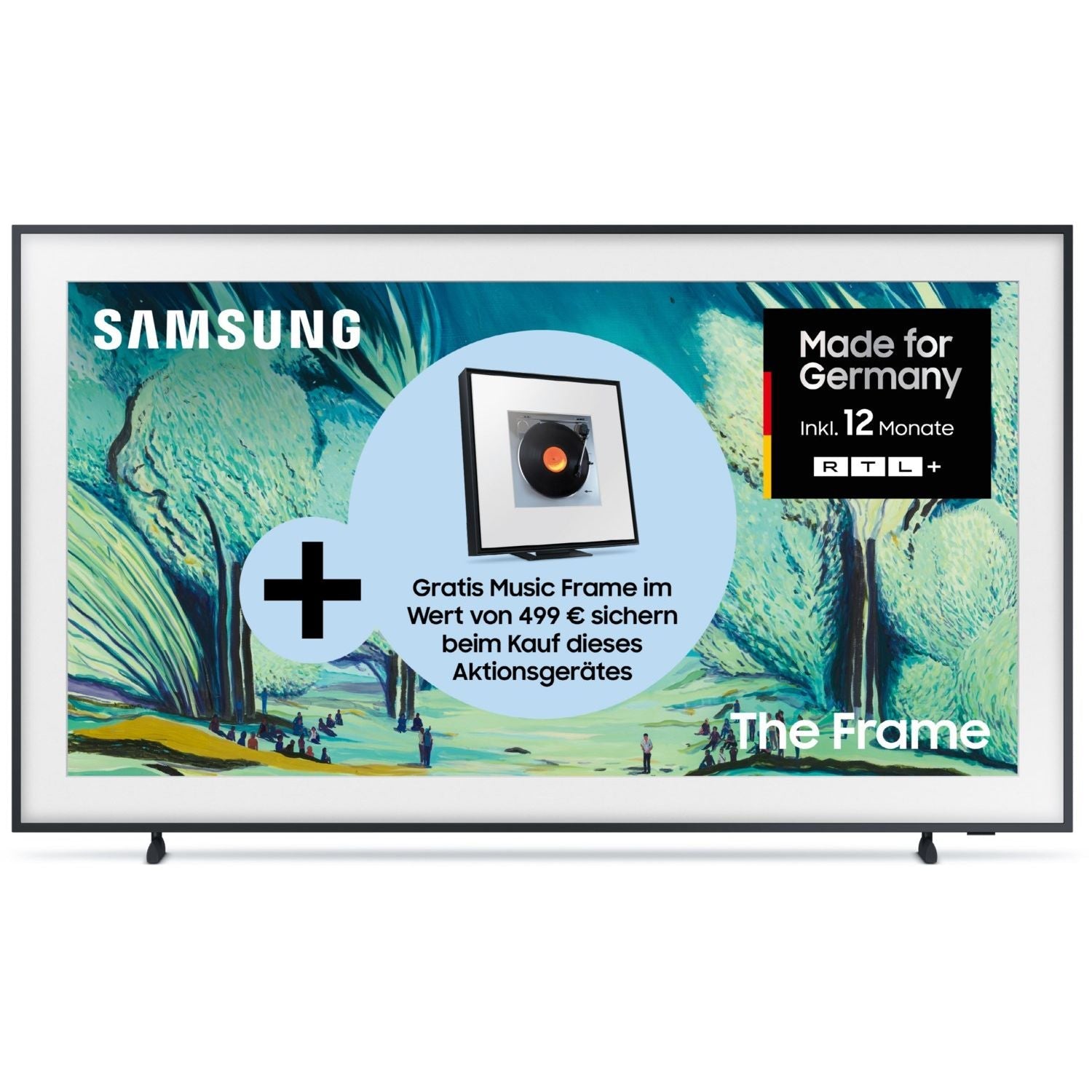 • Verwandle mithilfe des Art Modes deine Wohnung in eine virtuelle Kunstgalerie mit wechselnden Kunstwerken, wenn du gerade nicht Fernsehen guckst.