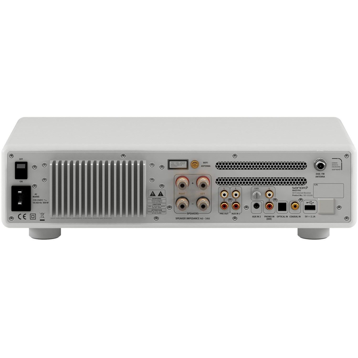 Zusätzlich bietet MAESTRO einen optischen und einen Koaxial-, sowie einen Phono-Anschluss (MM). Bedient wird direkt am Gerät, über die Fernbedienung oder per UNDOK™-App.