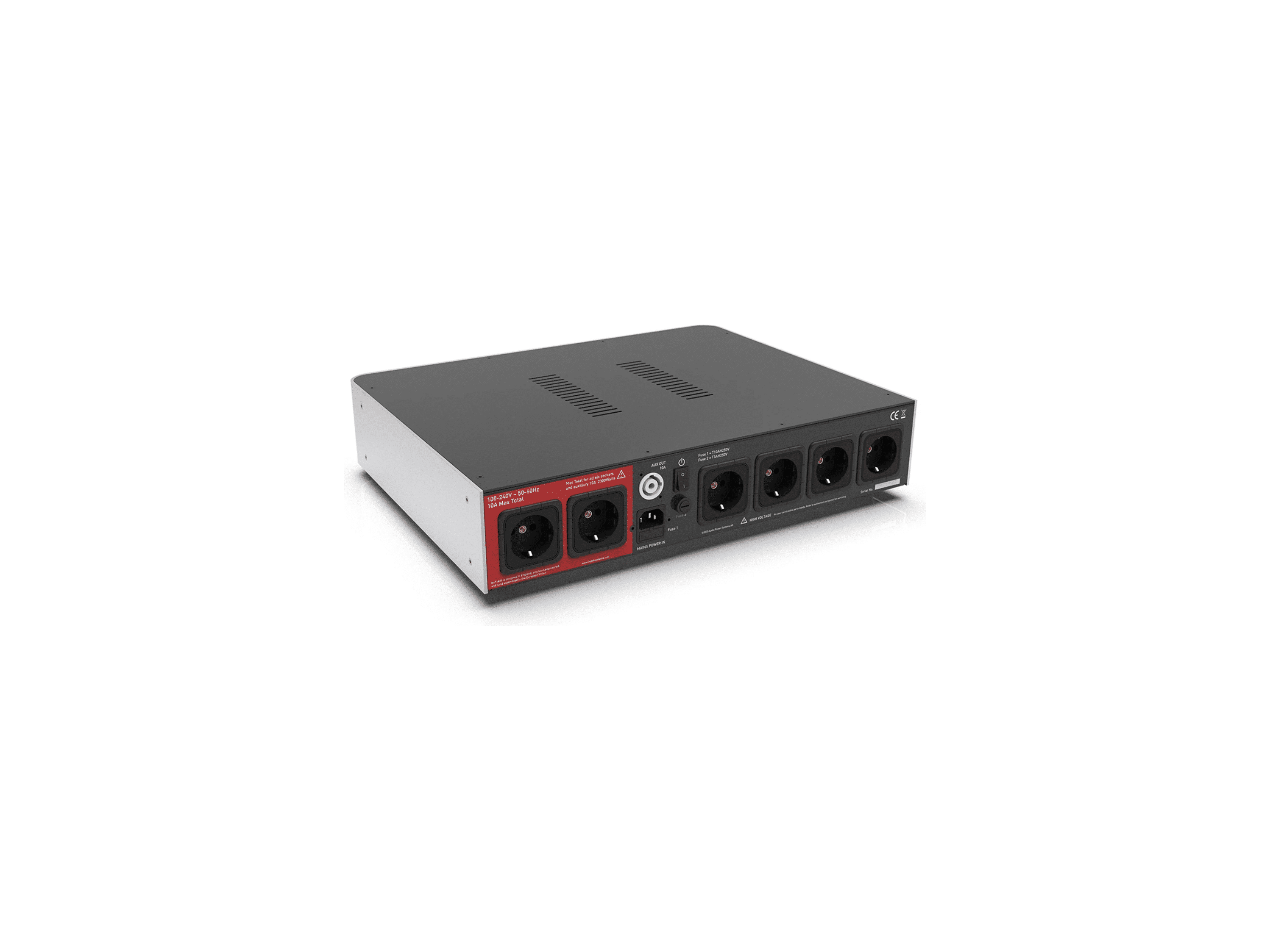 Somit besteht der V5 Elektra aus sechs unabhängigen Filternetzwerken in einer Box. Die meisten Stromfilter dieser Art verfügen über miteinander verbundene, in Reihe geschaltete Ausgänge. Dies ist ein Fehler, was auch nicht sonderlich klug ist, da sich die von der angeschlossenen Elektronik erzeugten Gegentaktstörungen dann von der einer Ausgangsbuchse zur anderen überlagern. Die elektrische Architektur und die völlig unabhängigen Filter der Ausgänge des V5 Elektra, verhindern dies und sind daher überlegen.