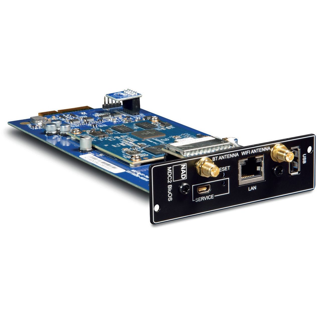 Das MDC2 BluOS-D Modul unterstützt hochauflösendes Musikstreaming bis zu 24 Bit/192 kHz über die BluOS Plattform. Die App zur Bedienung des Systems ist für iOS, macOS, Android und Windows verfügbar und bietet Zugang zu Hunderten von Internet-Radiosendern und mehr als 20 Streaming-Diensten. Im BluOS Netzwerk lassen sich bis zu 63 BluOS fähige Player ansteuern, auch die Einbindung in Haussteuerungssysteme von ELAN, Crestron, Control4, Lutron, RTI und anderen ist möglich.